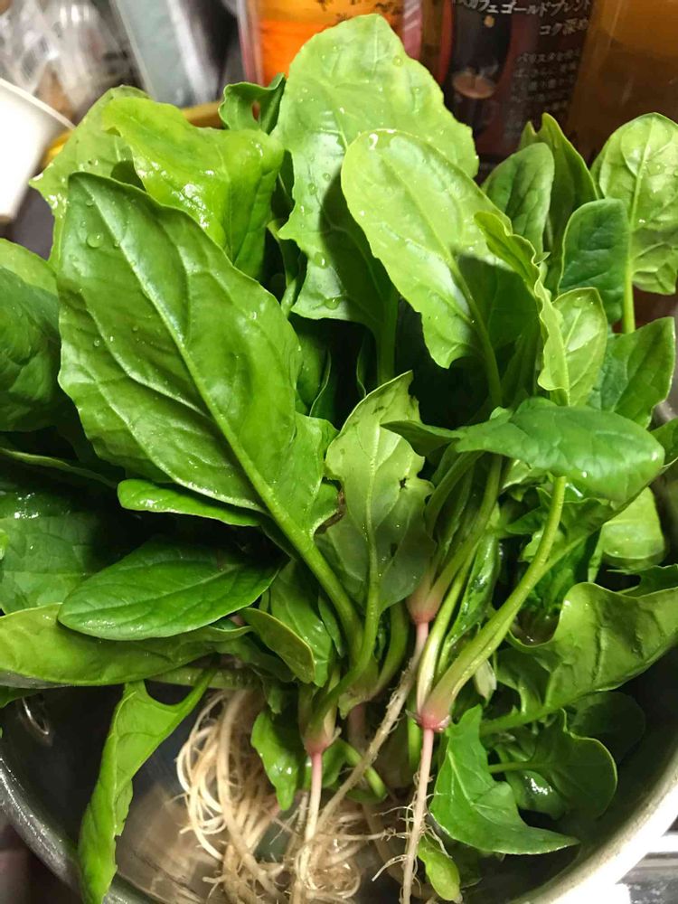 いつもなら大丈夫な春菊がこの冬の寒さでシナ〜ってなってしまっていて小さくてもほうれん草🥬ありがたい👏🎶
