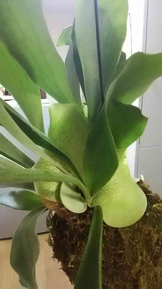 朝アップしたビカクシダの裏側の貯水葉です🐥表🆚裏どちらが勝つのか?