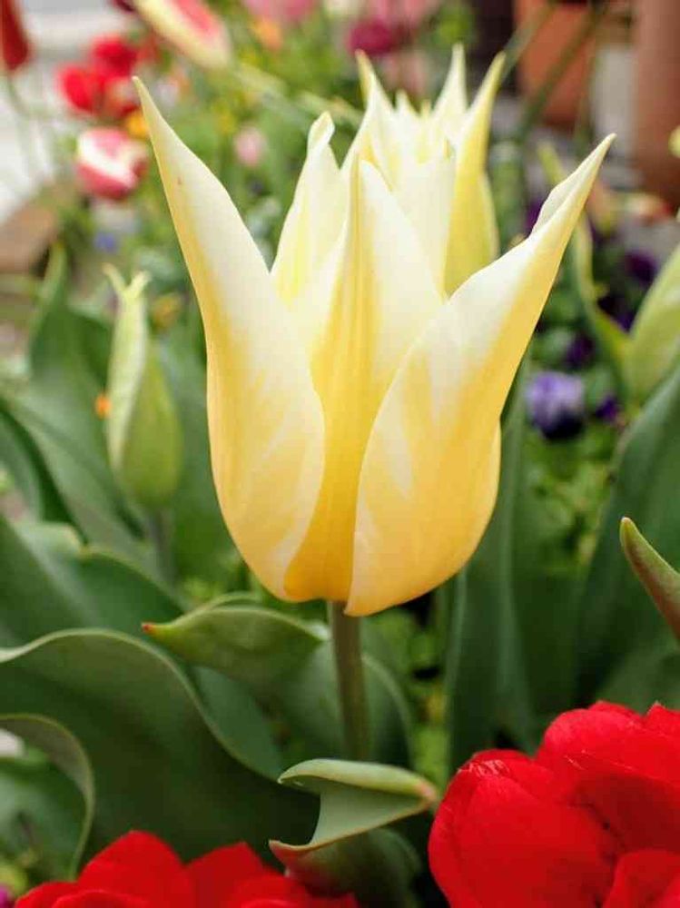 今日のお花、チューリップです😊去年の春に咲いた内、UPしてなかったものから、クリームホワイトに柔らかな黄色のレンブラント模様の百合咲チューリップ、バドライトです。アメリカで人気一番のビールの名前からのネーミングだそうです。そういわれるとビールっぽい配色でしょうか😅🍺