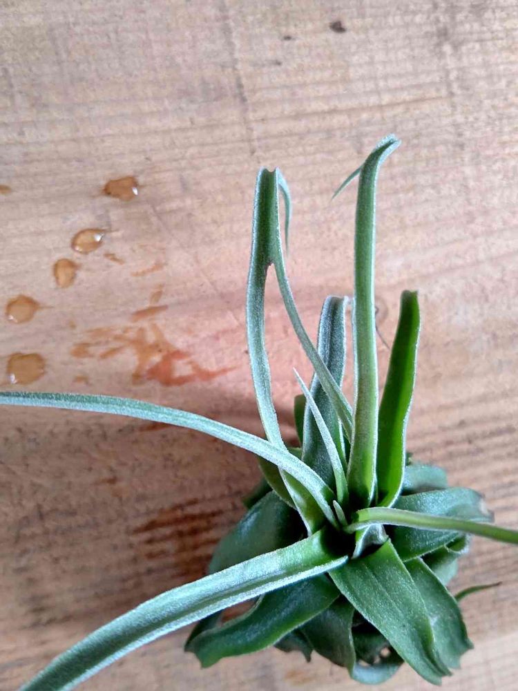 新葉が古葉を突き破って生えてくる為に古葉の真ん中が裂けたまま成長して穴空き状態に。