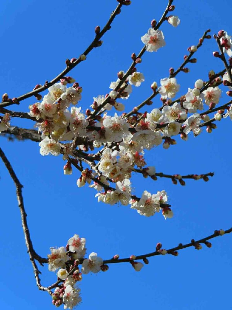 1月19日 晴れの日 リハビリの帰りに寄った神社の白梅です。
