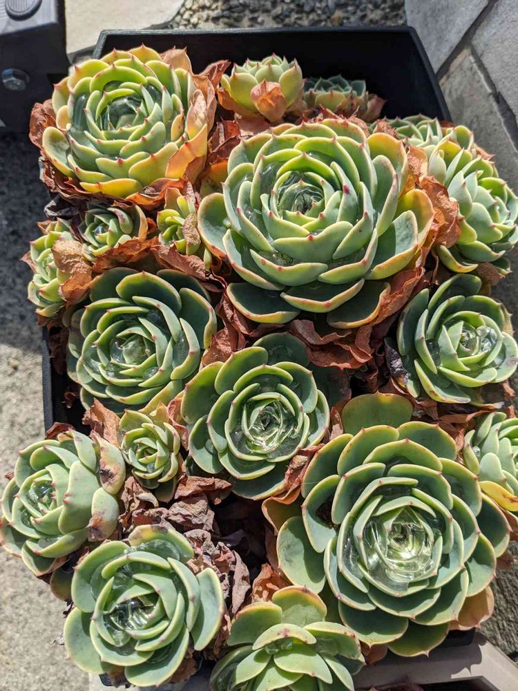 露天で庭先のプランターに植えられたモリモリの七福神さん❗この冬の寒さにも耐えた様ですね😀💓