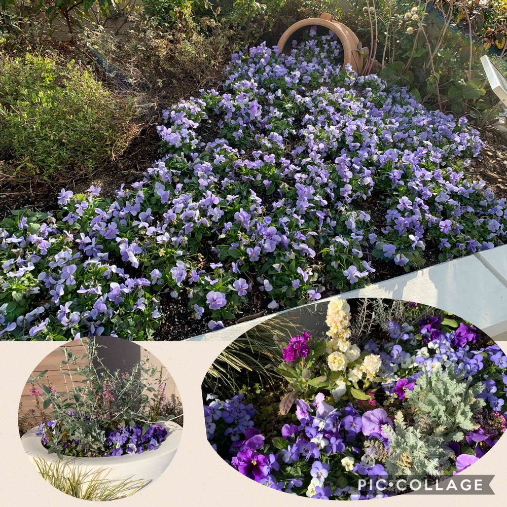 特に⬆️の鉢からこぼれるように咲き誇るビオラがいつも素敵だな〜と思います💜💛💜