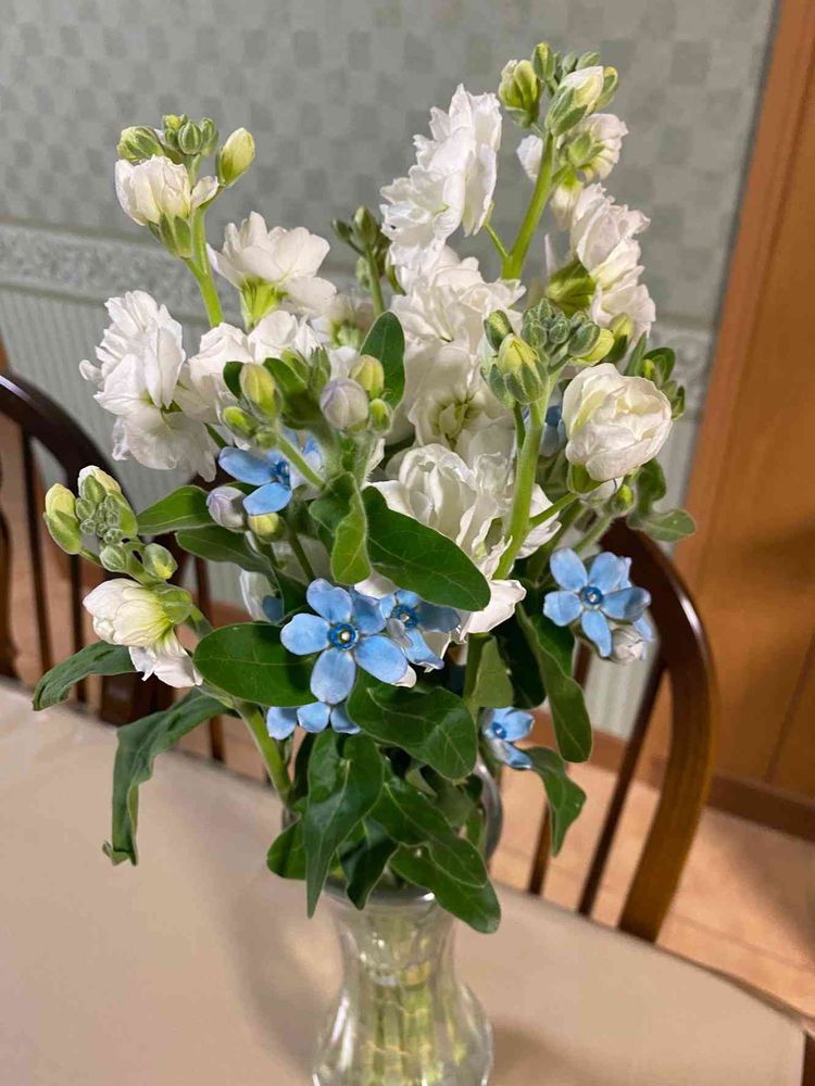 白のストック🤍とブルースター💙