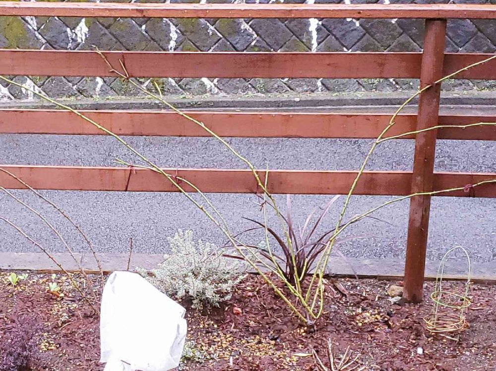 手前の不織布の中はオリビアローズオースチン。鉢から下ろすときに深植えにしてみました。こちらは数年前に裸苗で購入し、ゴボウ根を鉢に押し込んだ記憶があります。