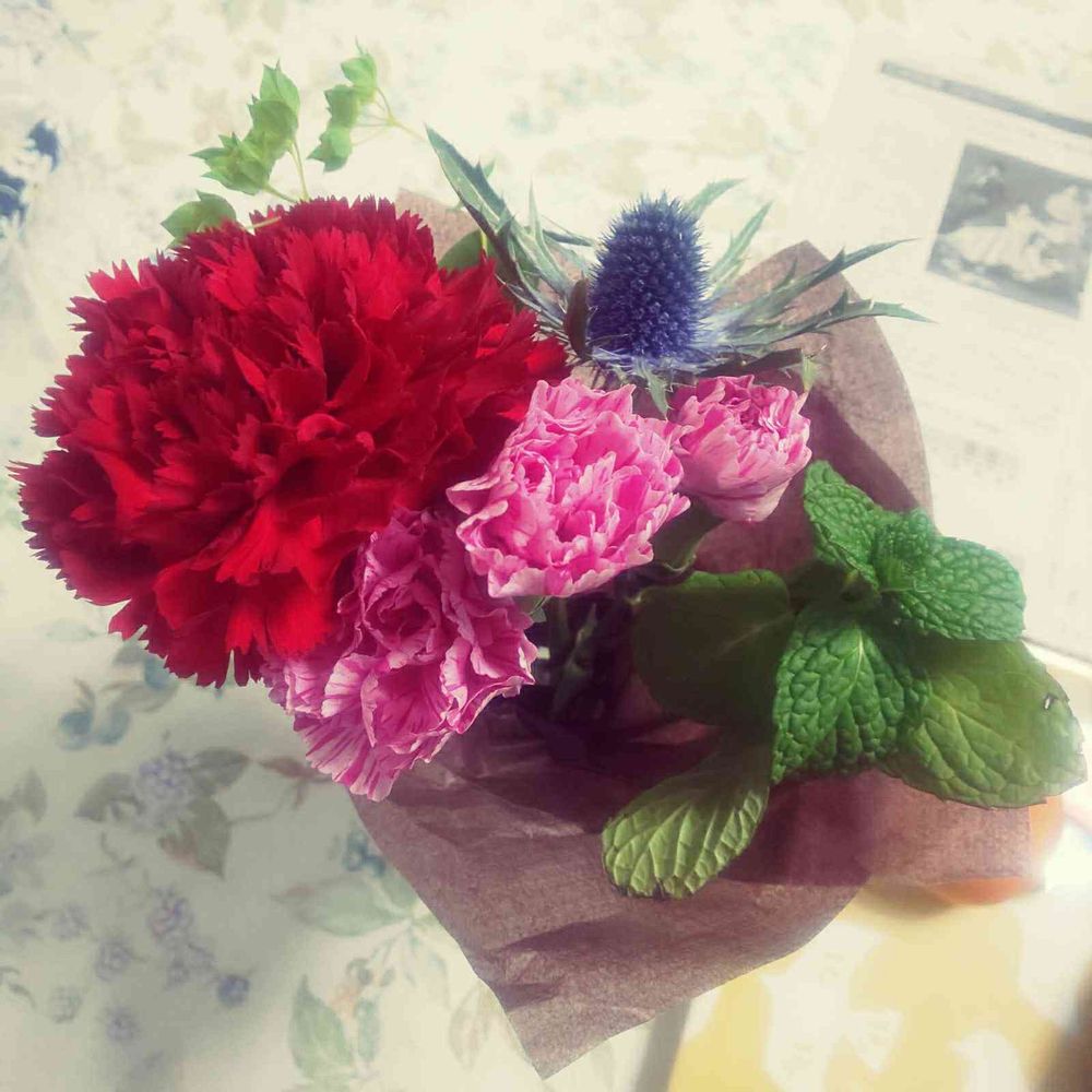毎回お花の種類を聞くのを忘れてしまう。閉店間際に駆け込みになってしまったけど、この花屋さんの組み合わせが好き。