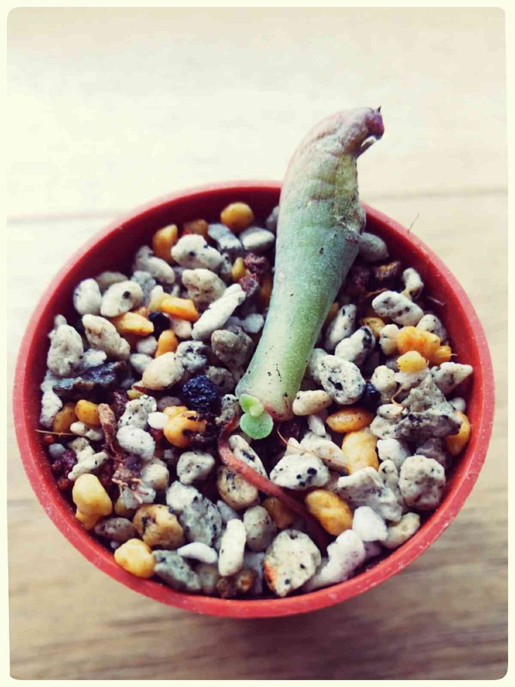 枯れた下葉とりをしていたら、スッととれた葉がまさかの発根&発芽💕しかも今年の干支にちなんだ(?)モーサン✨縁起がいい✨