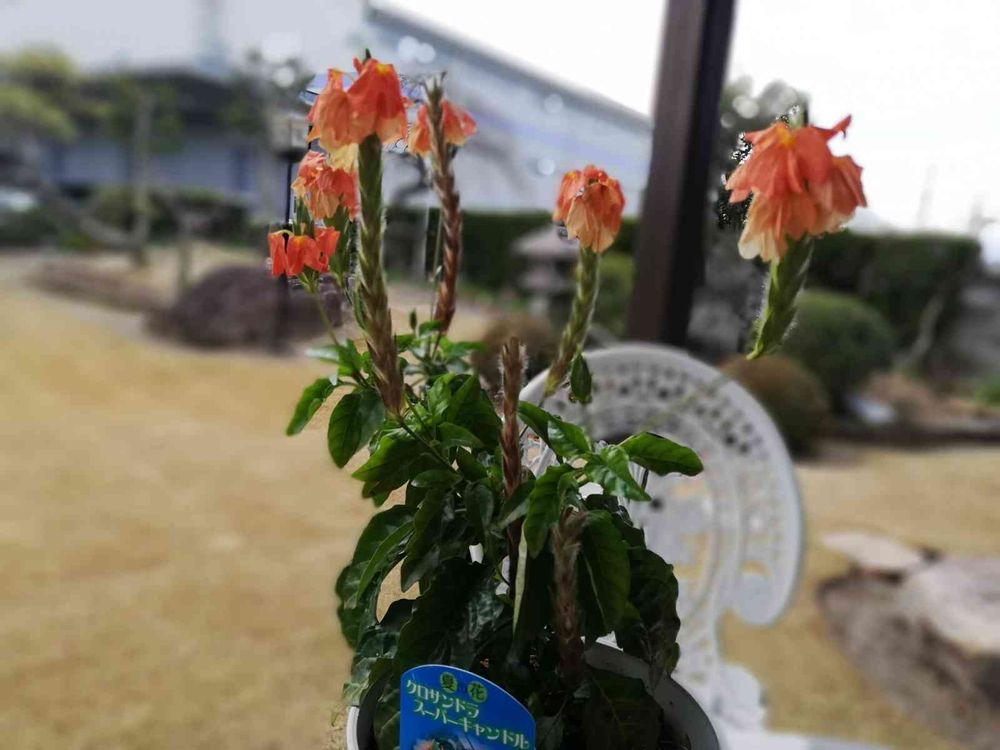 こんにちは🙇💞昨年の六月に買い連れて帰り、今も咲いています。咲いたのを取り蒔いて見ましたら芽が出てきましたので、植え替えしてみました。今咲いているクロサンドラに、花目が付き咲き始めました。何時まで咲いてくれるのか?不思議です😅💦