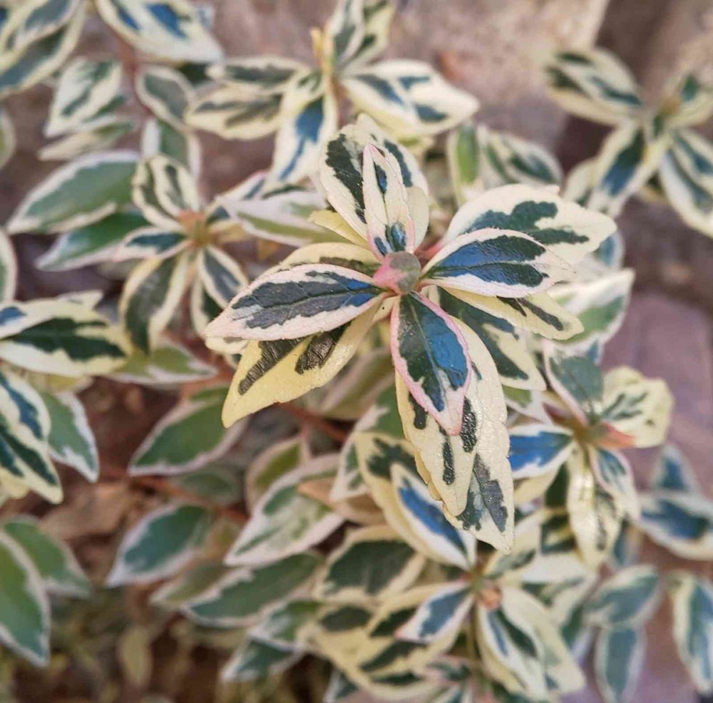 斑入りアベリアがちょっとピンク色になりました😆