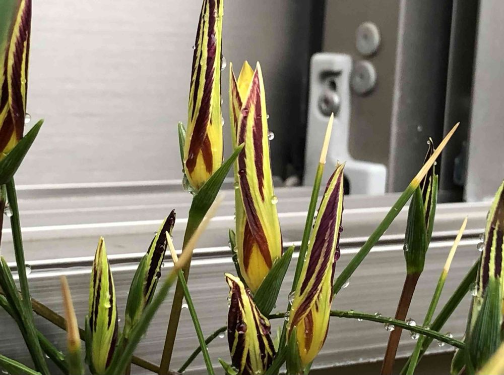 蕾がストライプ模様になっているロムレア ディッシフェラです✨。