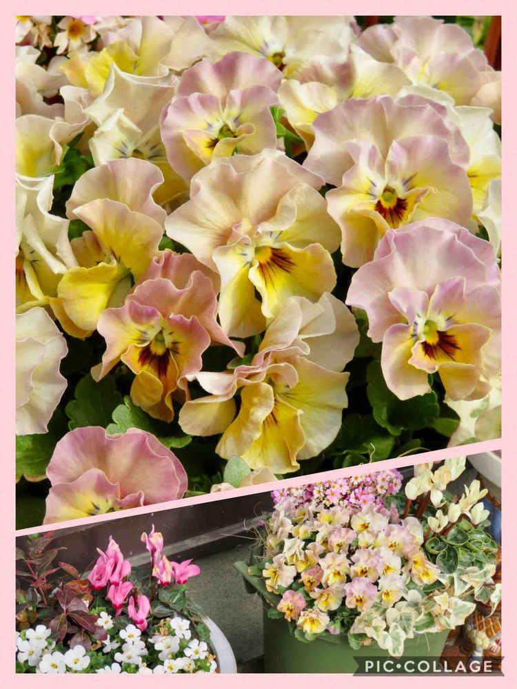 淡い優しい色の組み合わせでとっても素敵な寄せ植えです🤗💕