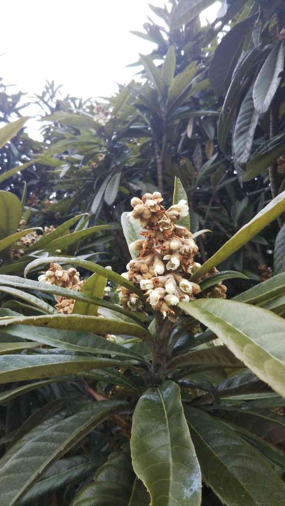 ビワのお花ってもう咲いてるのね| •ૅω•́)ᵎᵎᵎ