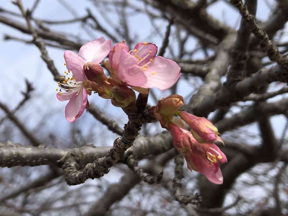 昨日27日 伊勢崎市民の森公園の河津桜が数輪咲き始めました。