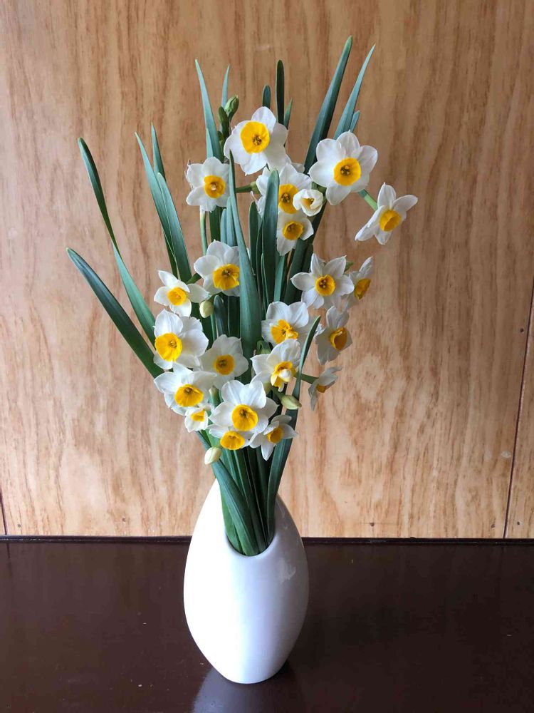 頂きものの花器ですがシンプルでとても気に入って長く愛用しています😊水仙もいい香りがして大好きなお花です❣️
