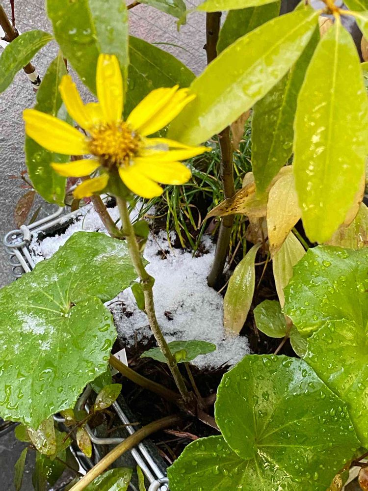 先程、雪❄️❄️が降っているなぁと窓外を見ていたら、事務所玄関前の5x緑(ゴバイミドリ)にも雪が積もりました💕