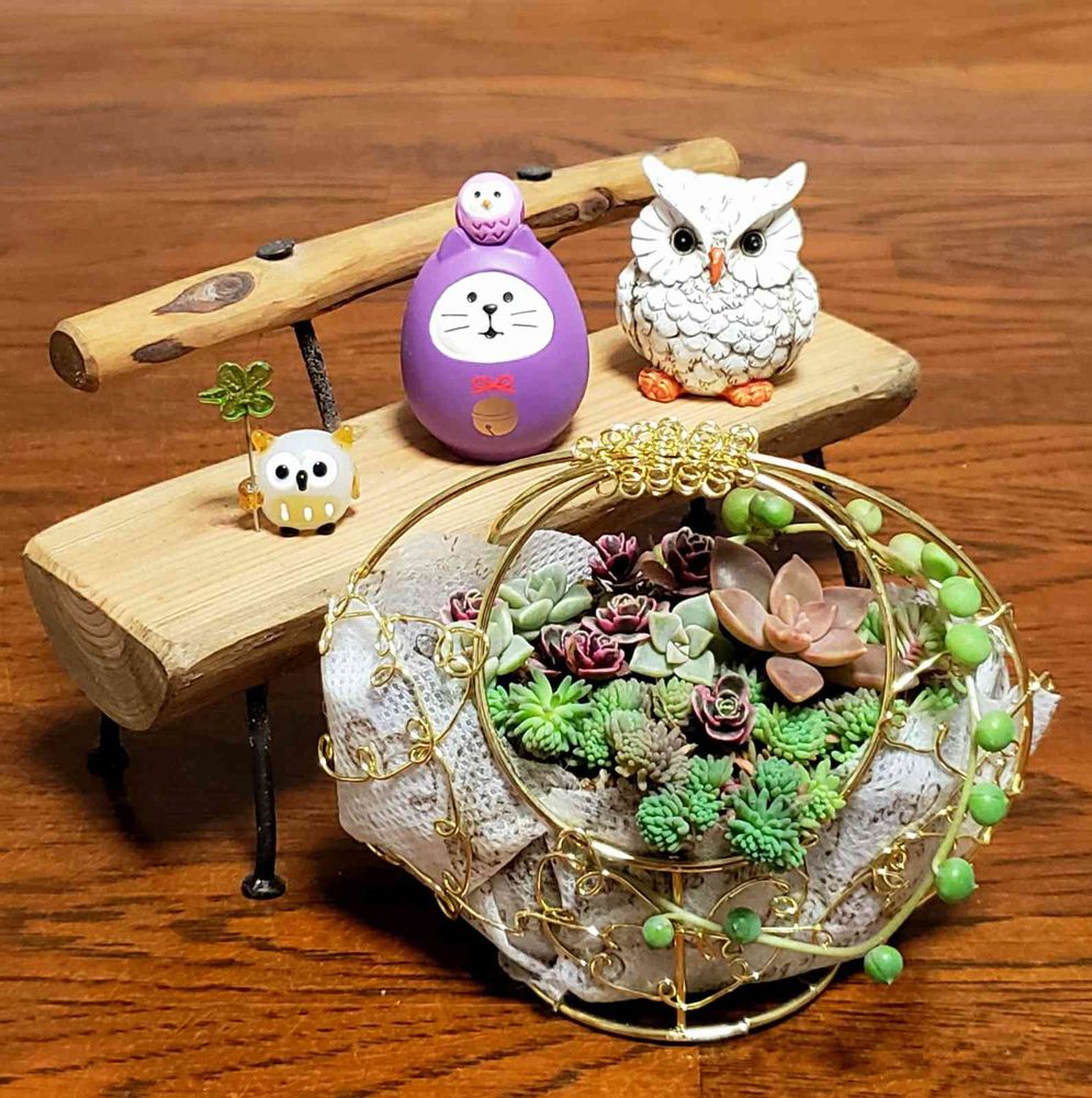 多肉さんのワイヤー籠入り