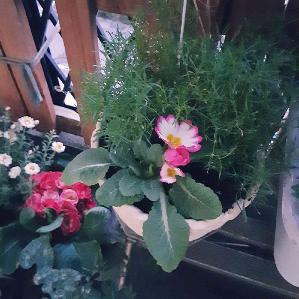 バルコニー/ベランダ,かすみ草・ジプシーホワイト,プリムラ・ジュリアンの投稿画像