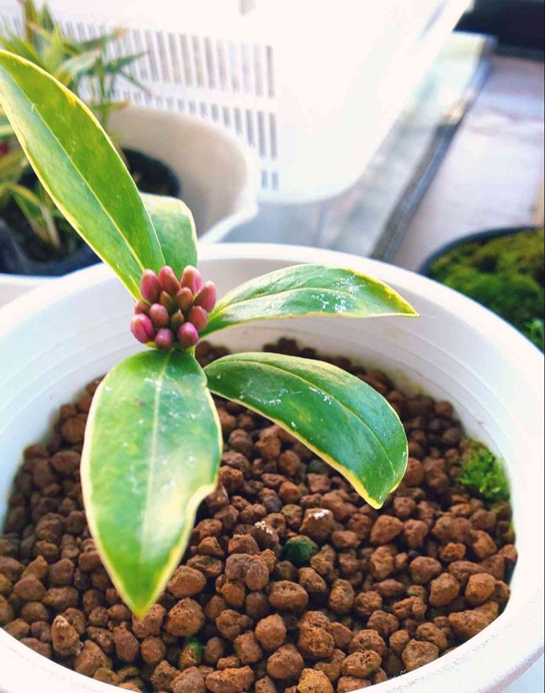 挿し木でこんなに小さな沈丁花に、蕾がギッシリ付いてて凄いです☺️