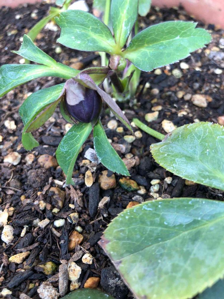 一月の初めにぷっくりと花芽が出たなぁと思ってから、ゆっくり、ゆっくりと成長して、黒い花弁になってきました💕茎が余り伸びないままに咲くのかな?楽しみです🎶