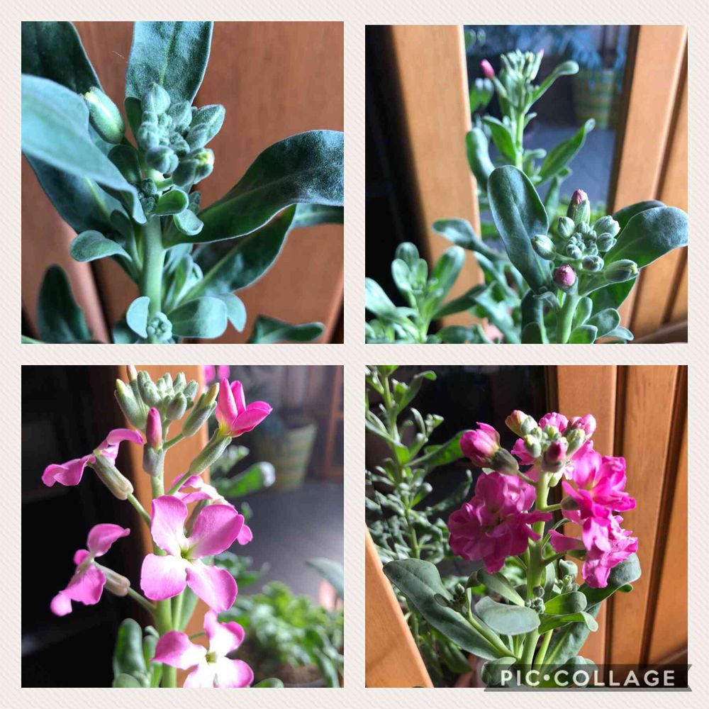 小さな苗から育てたストックさん、成長の様子です、、1鉢に3本植えたのですが2本は55センチ以上になりあと1本はまだお花が咲いていません、、よくここまで育ってくれました👏👏👏🥰