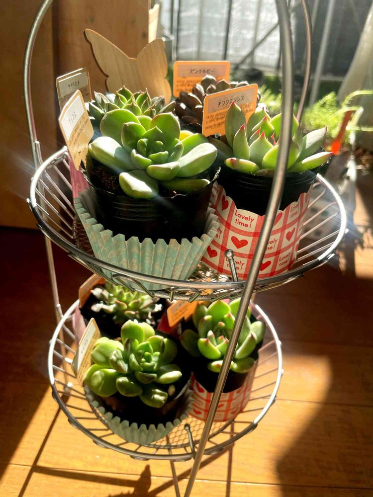 N百圴で多肉セットがあり、その後偶々ケーキスタンド🧁を見つけ、帰宅後我が家にあったカップに入れ乗せたら「アラ❤️ ピッタリ✧⁺⸜(●˙▾˙●)⸝⁺✧」