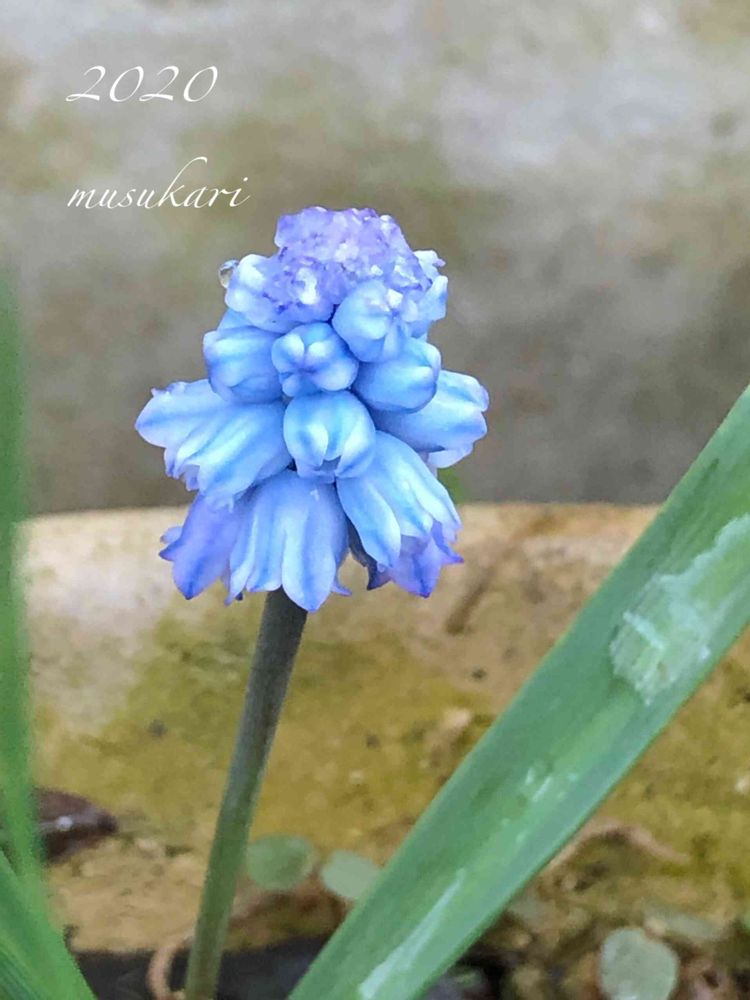 このムスカリさん、いつ植えたか、記憶になくて……。クロッカスの鉢植えに入っていたから。誰かに頂いてとりあえず、土に埋めたのかも😅