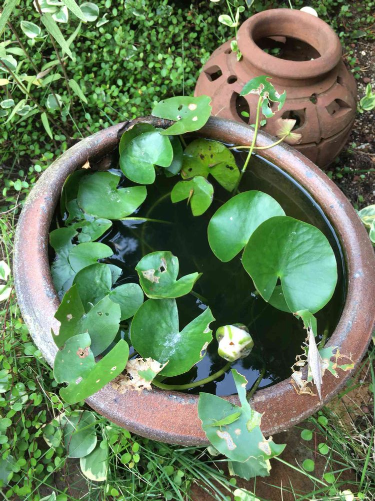 小さな庭,睡蓮鉢,虫食いの投稿画像