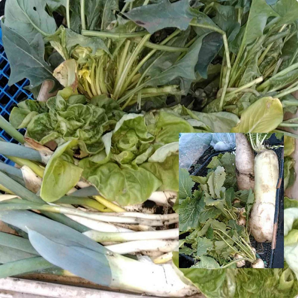 今日の収穫。長ネギは根腐れ病で今年は失敗😱カブの間引、後大根はこれから切り干し大根にします💦💦