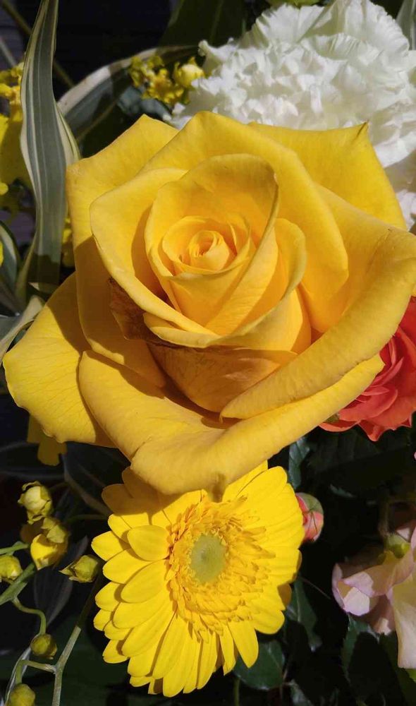 こんばんは〜😃大好きな黄色の薔薇とガーベラでお祝いありがとうございます🙏