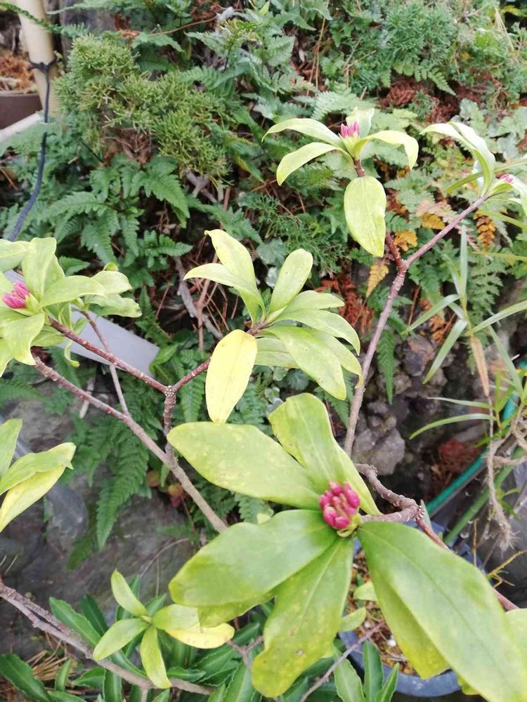家の新客ジンチョウゲ 鉢植えにしました😆玄関に置いて かほり楽しみます💕