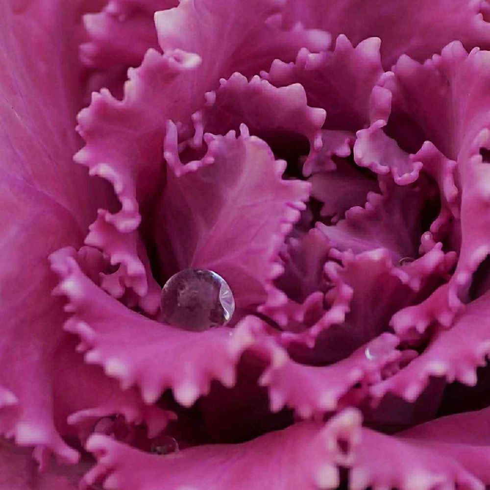 真ん丸の雫をたたえた紫色の葉牡丹で、トリトンさんの㊗️4700pic🎉をお祝いします💕