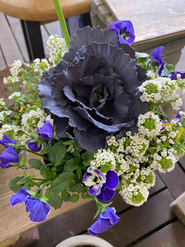 お出かけ先,葉牡丹の寄せ植え,青い花が好きの投稿画像