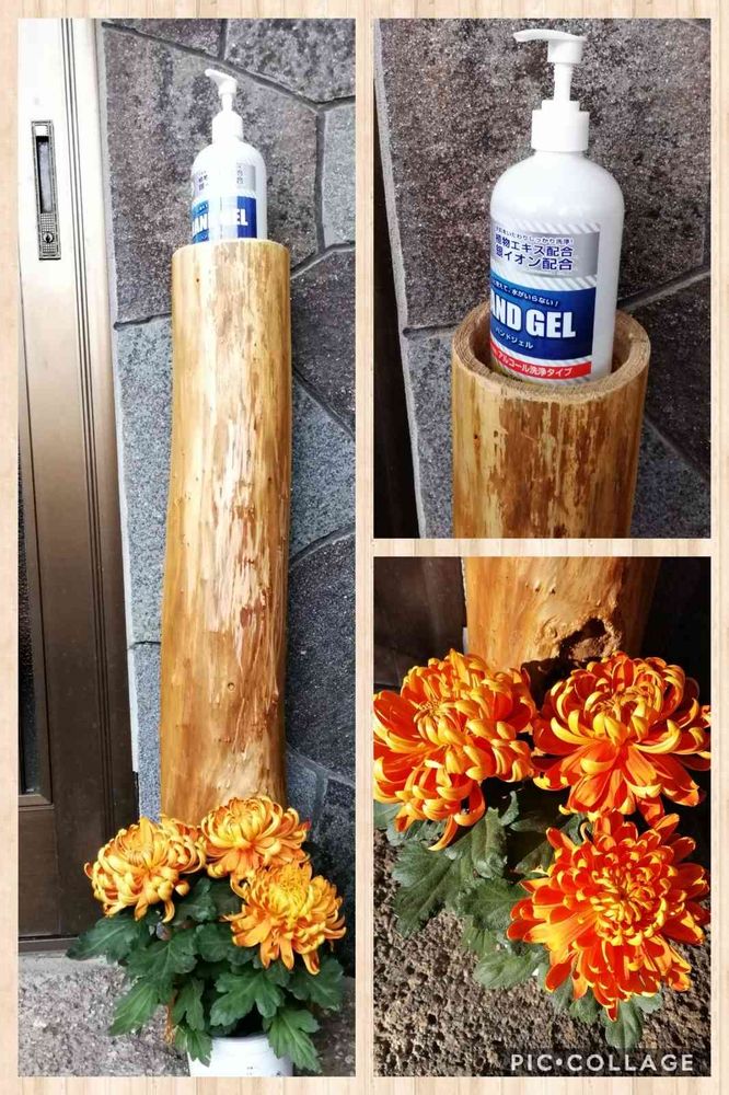 可愛いいお花に素敵な台マッチしていますね。これなら消毒忘れませんね😉コロナ対策頑張ります🍀😌🍀