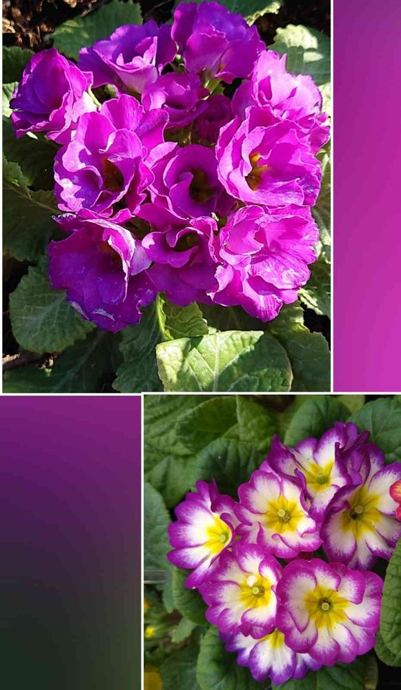 紫のバラ咲きと一重のプリムラジュリアン、可愛いです💕