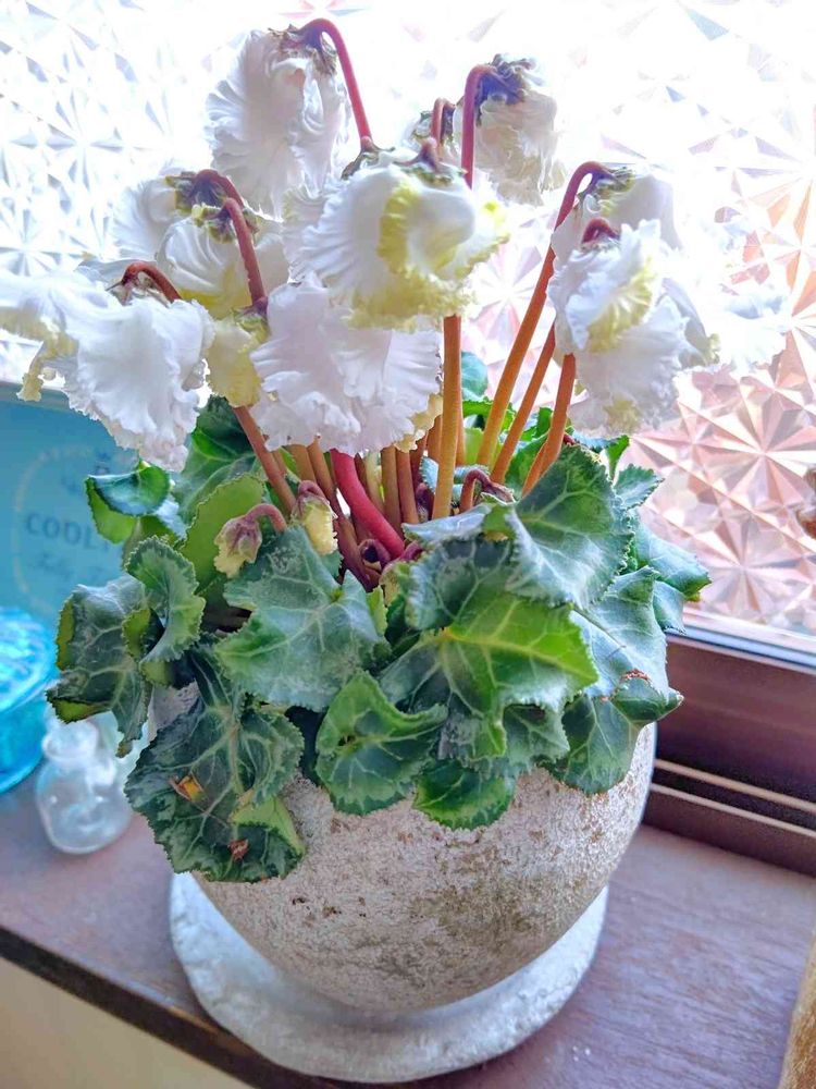 数あるシクラメンの中で寒波でも唯一調子を崩さなかった、ベル咲きクシラメン クロシェット