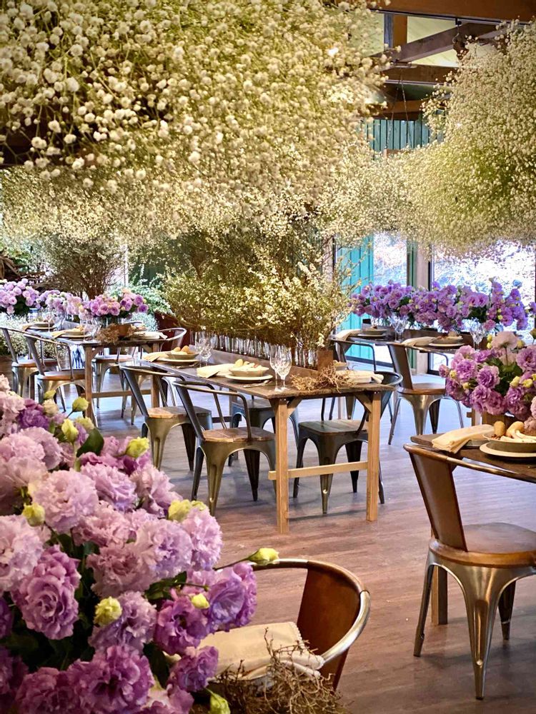 トルコキキョウやかすみ草…をふんだんに飾り、視覚、嗅覚を満足させてくれる見事な空間にうっとり💖