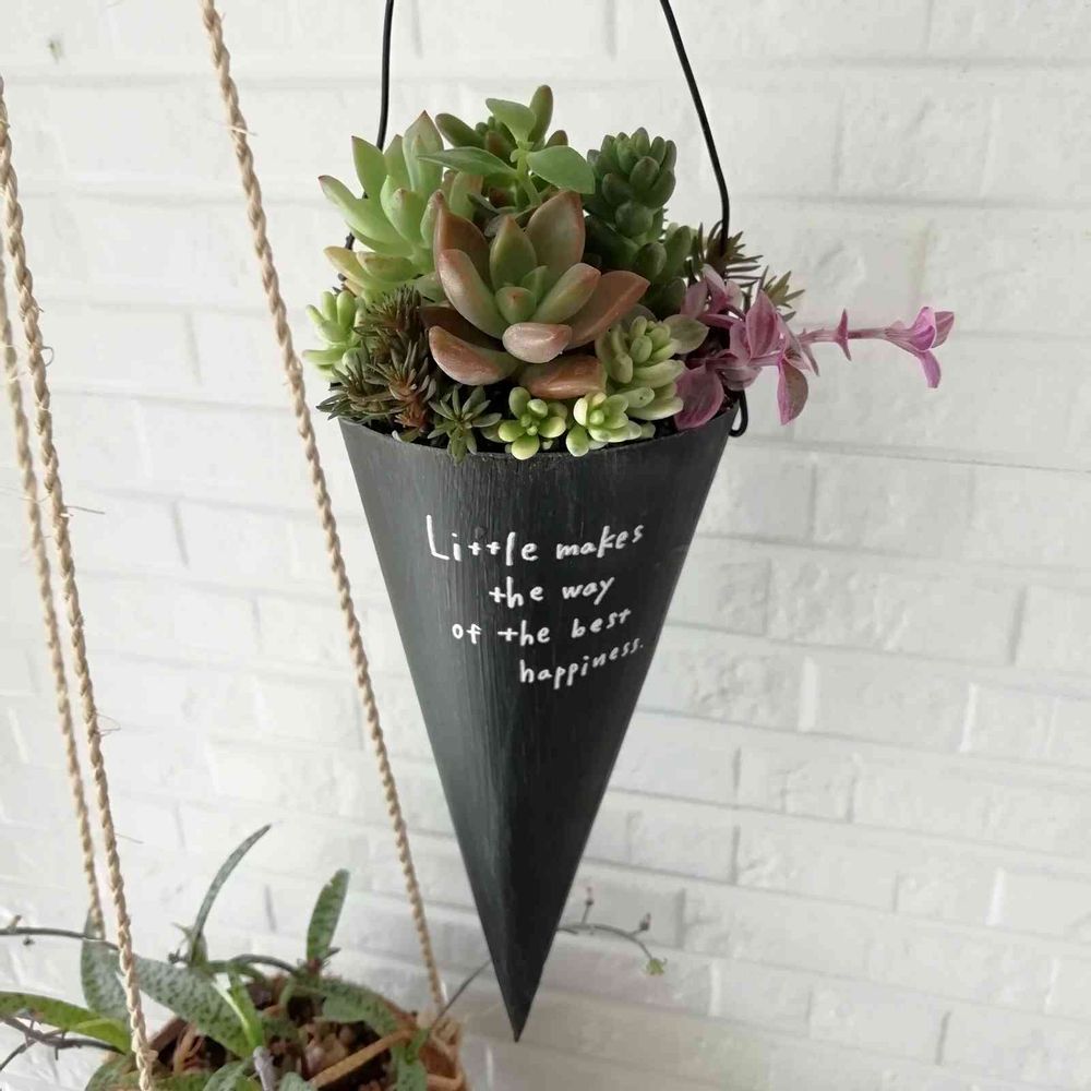 コーンブリキ缶に寄せ植えました🌟