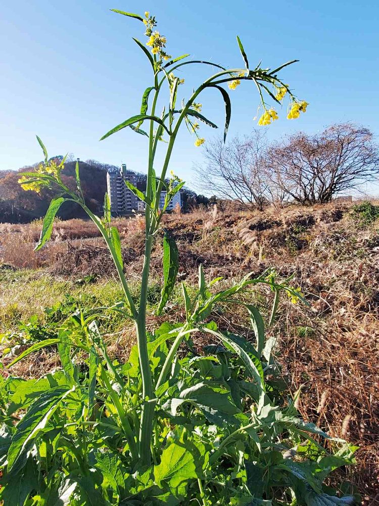 前に摘んでる人がいて聞いたらカラシ菜とか?