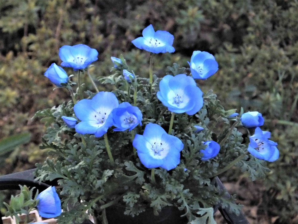 お散歩途中のお花屋さん。 ブルーのお花「ネモフィラ」が目に飛び込んできました。思わず、パチリ