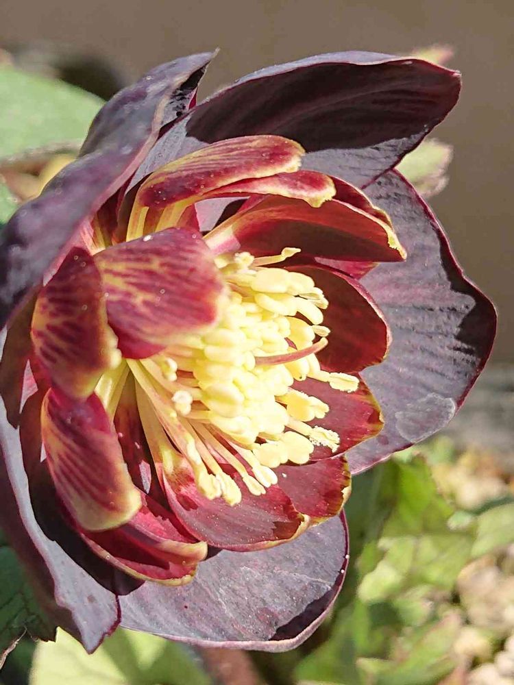異次元のクリスマスローズ。深いグレープ色に黄色が混じる滋味のある色合いですね♪とても素晴らしい。そして、羨ましいです。