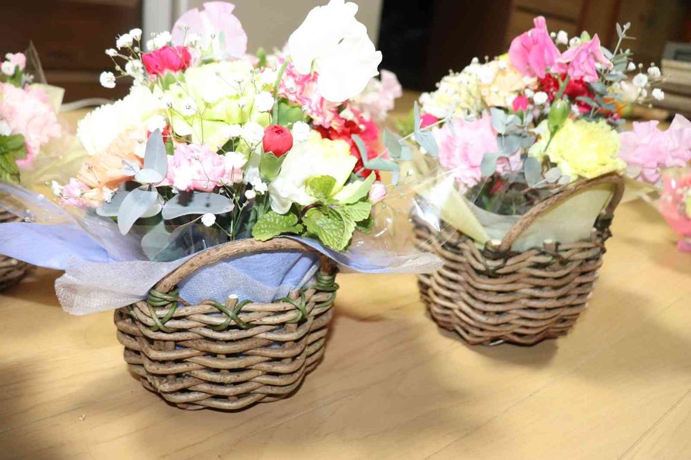 先日upしたつた籠にフラワーアレンジメントをして納品してきました😆とても喜んでいただけて私まで嬉しくなりました😌