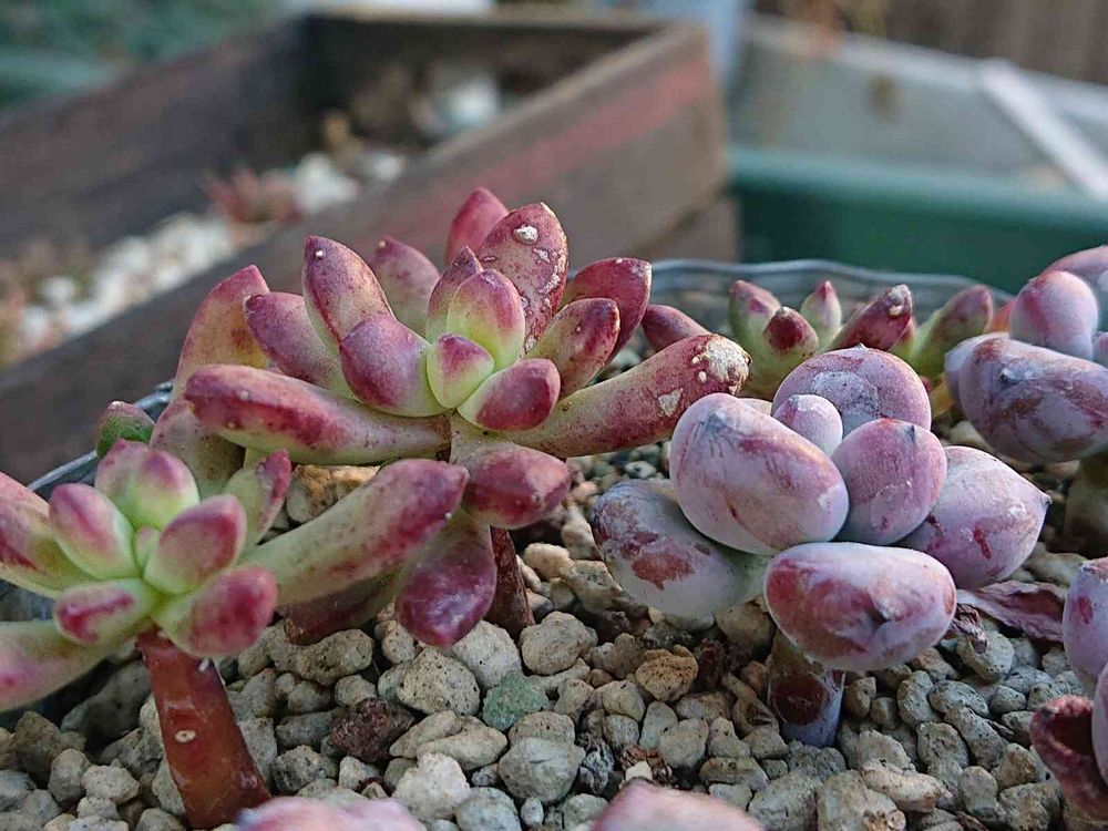 こちらの鉢は軒下でスパルタ育成しているので、寒くて紅葉してます←鬼の諸行💦