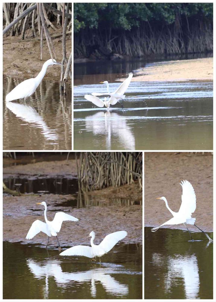 出かけたら干潮時の水辺で中鷺に出会いました。当初は一羽だけで餌探しをしていた所へ仲間が参入したら餌探しは止めなにやら遊び?に興じてる様に見えましたᐠ ♡ ᐟ