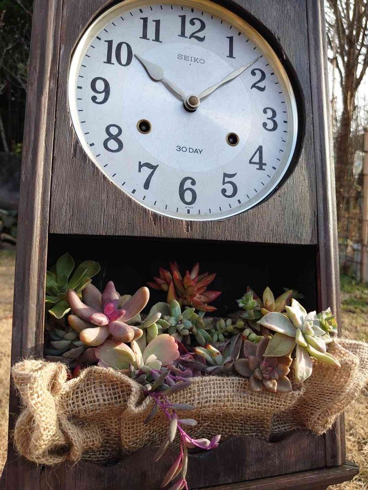 以前も時計に植えた多肉を投稿したんですけどその時は時計に直に土を入れて植えたんです