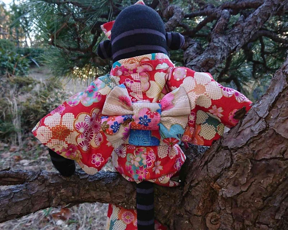 👘着物の後ろ側からしっぽも出るように「穴」を開けて縫ってあるのですよ。( *´艸`)プブ♪♪♪