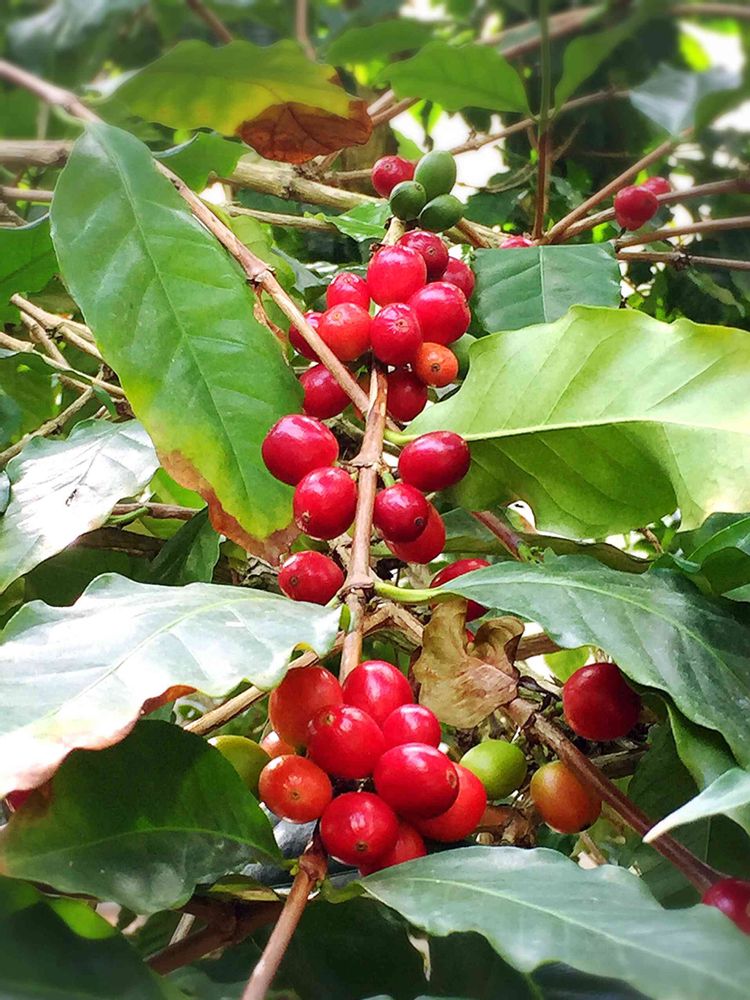 コーヒーの木は白いお花が咲いたあとに、緑色の実がなり、次第に熟してくると、実が赤くなってきます❤️