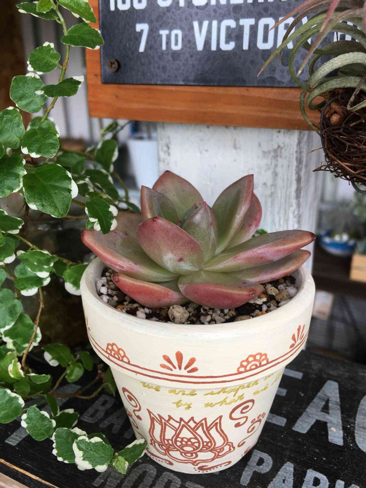 7月のハンドメイドフェスで出会った素敵な手書き鉢に"アディオス"というタニクを入れて見ました✨