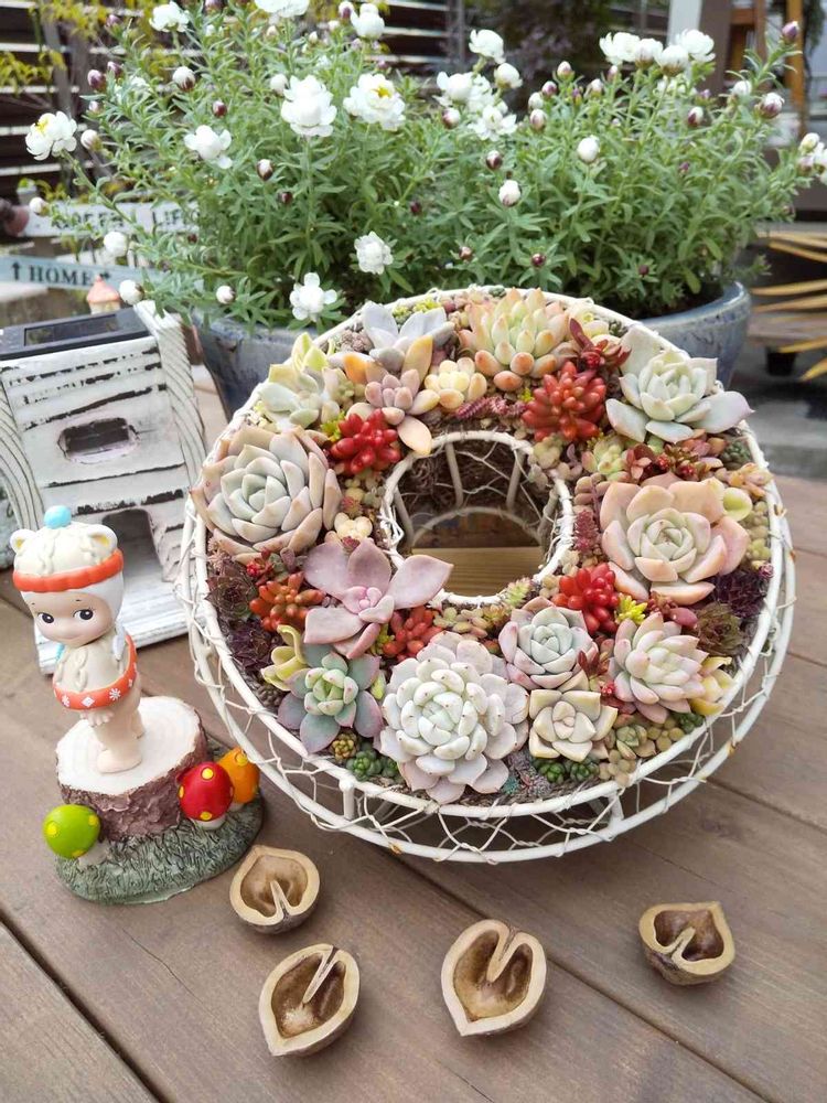 小さな庭,多肉のリース♡,多肉寄せ植え♡の投稿画像