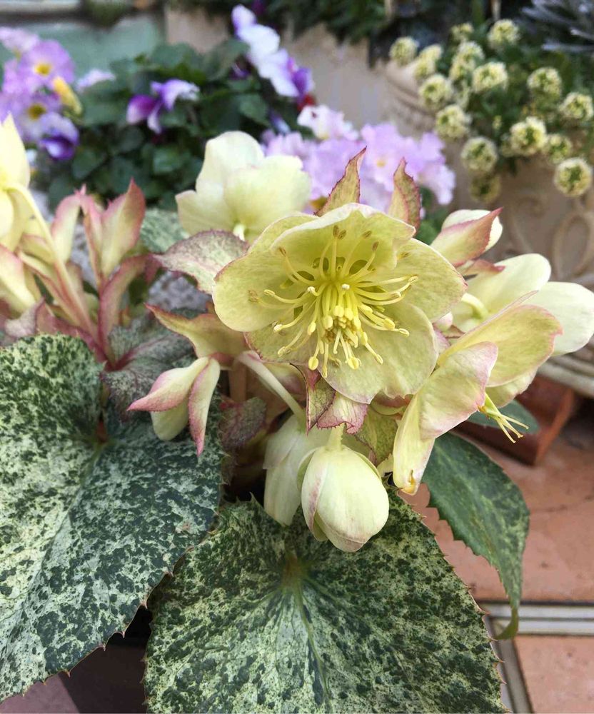 葉が斑入りのクリスマスローズです