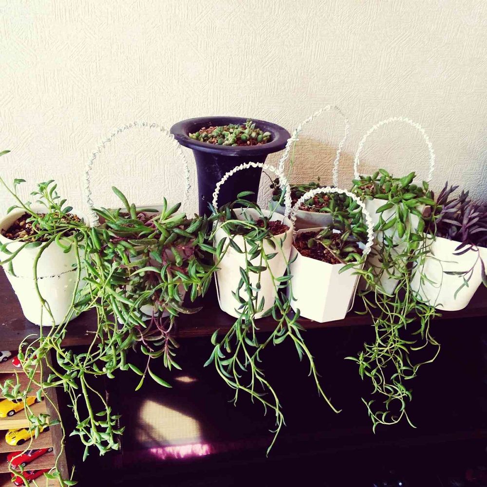 長く伸びれば土元の茎は弱ってくるので、長く伸びた何本かをそのまんま鉢の上にトグロ巻きにして、その上から土をパラパラと。そうしたら、あっという間にモリモリになるよぉ。お試しあれ〜